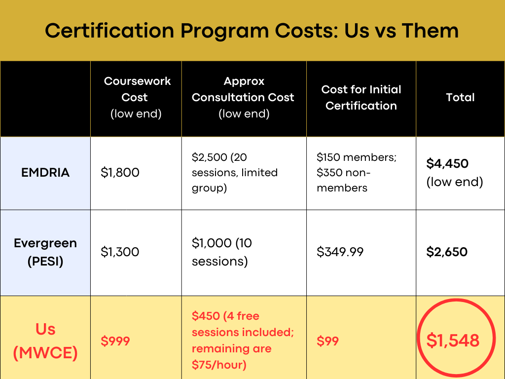Need certification fast? Pursue certification in EMDR in as little as 5 weeks. 〰️〰️ Need affordable certification? We charge 60-75% LESS than our competitors! 〰️〰️